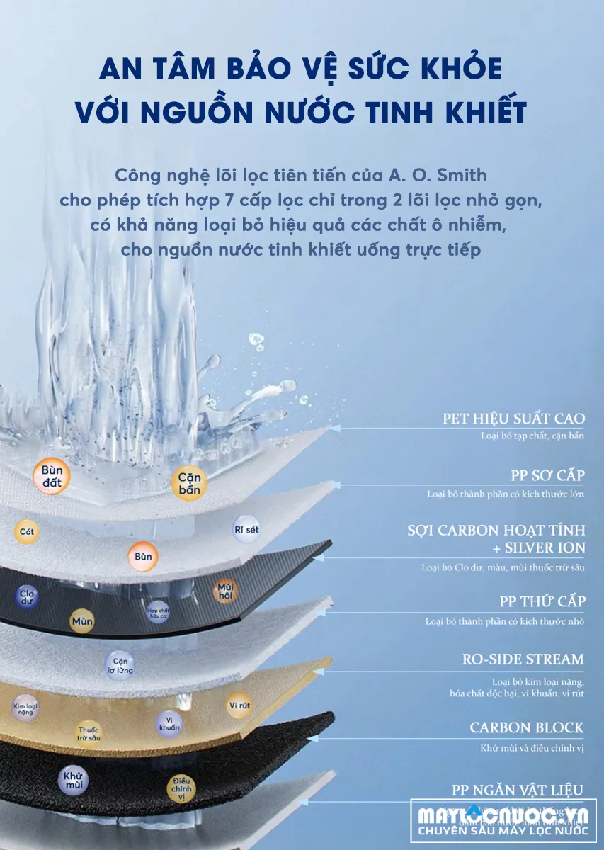 7 tầng lọc, tích hợp trong 2 lõi lọc
