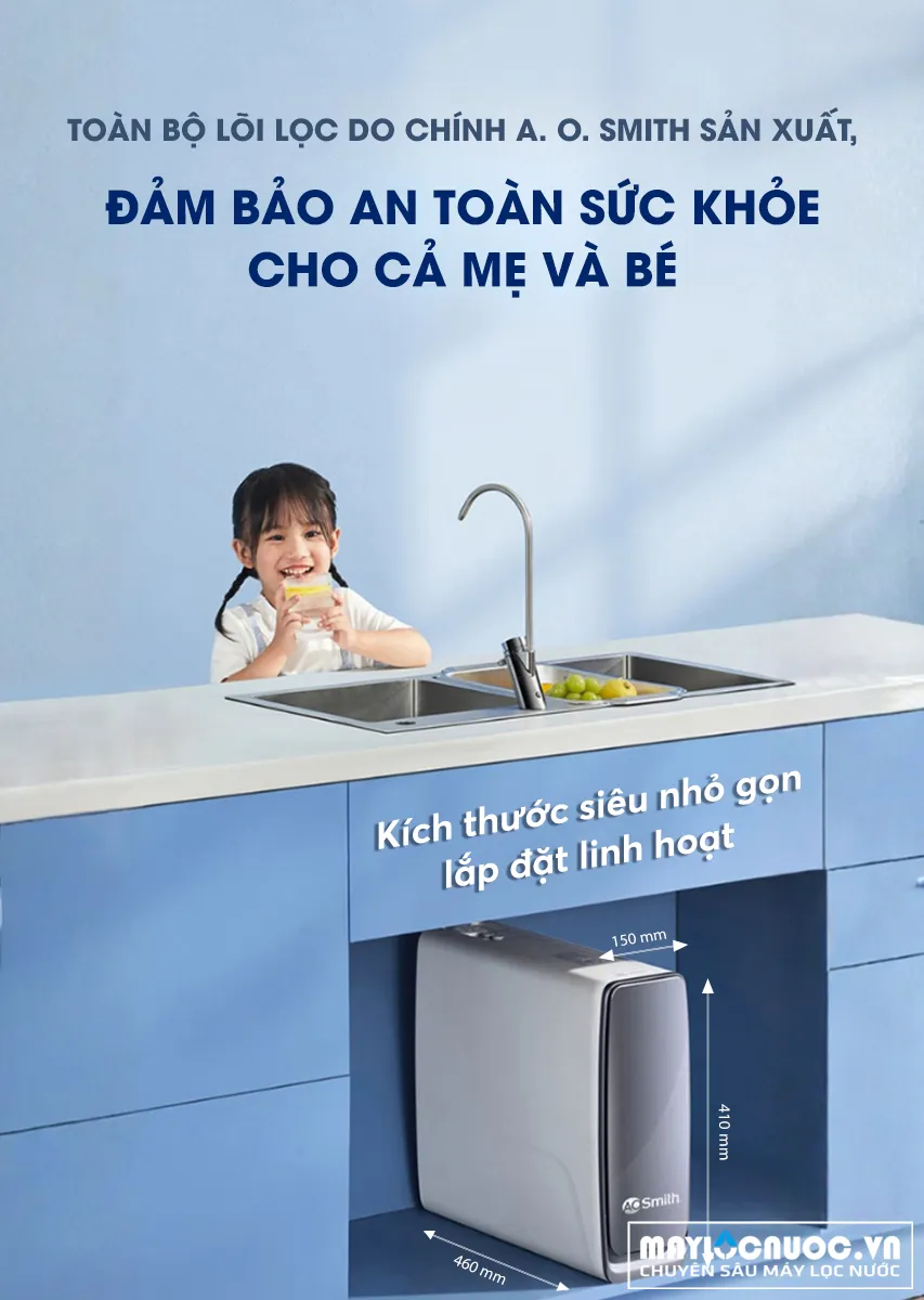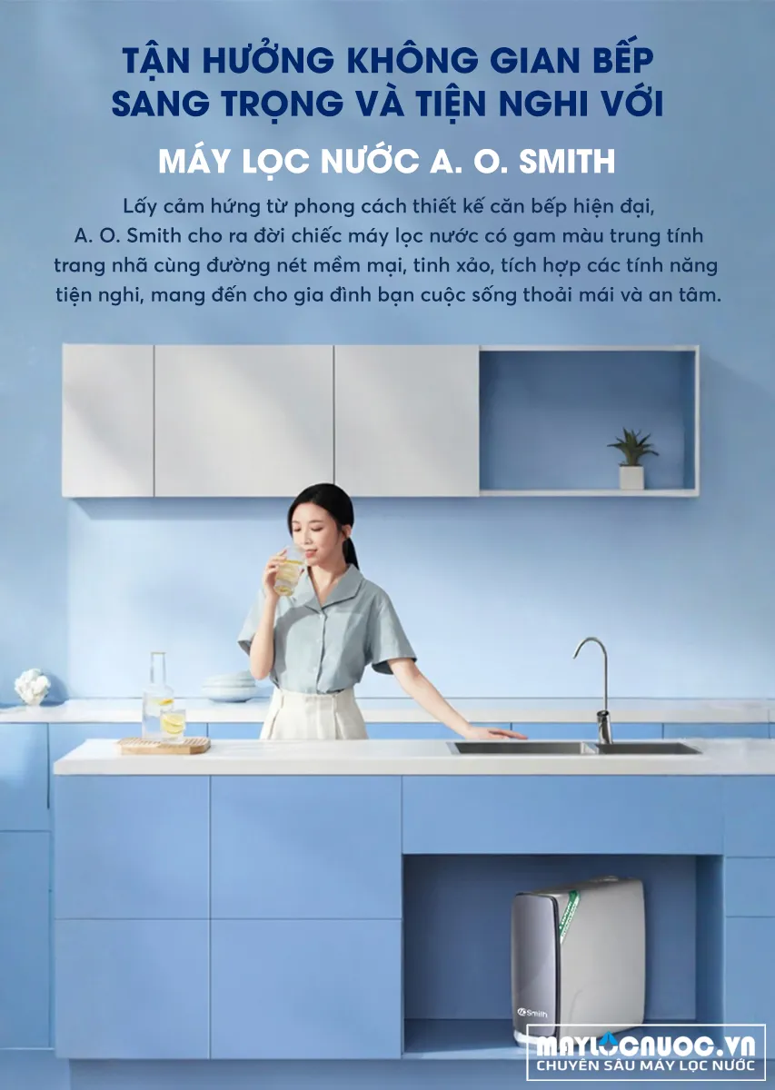Máy lọc nước A. O. Smith X1000 New sở hữu thiết kế hiện đại, phù hợp nhiều không gian sống và mang đến nguồn nước sạch an toàn cho gia đình.