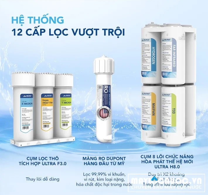 Đánh giá Máy lọc nước RO nóng lạnh Hòa Phát HPN639 - 12 Lõi lọc
