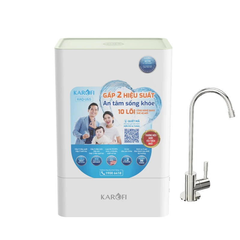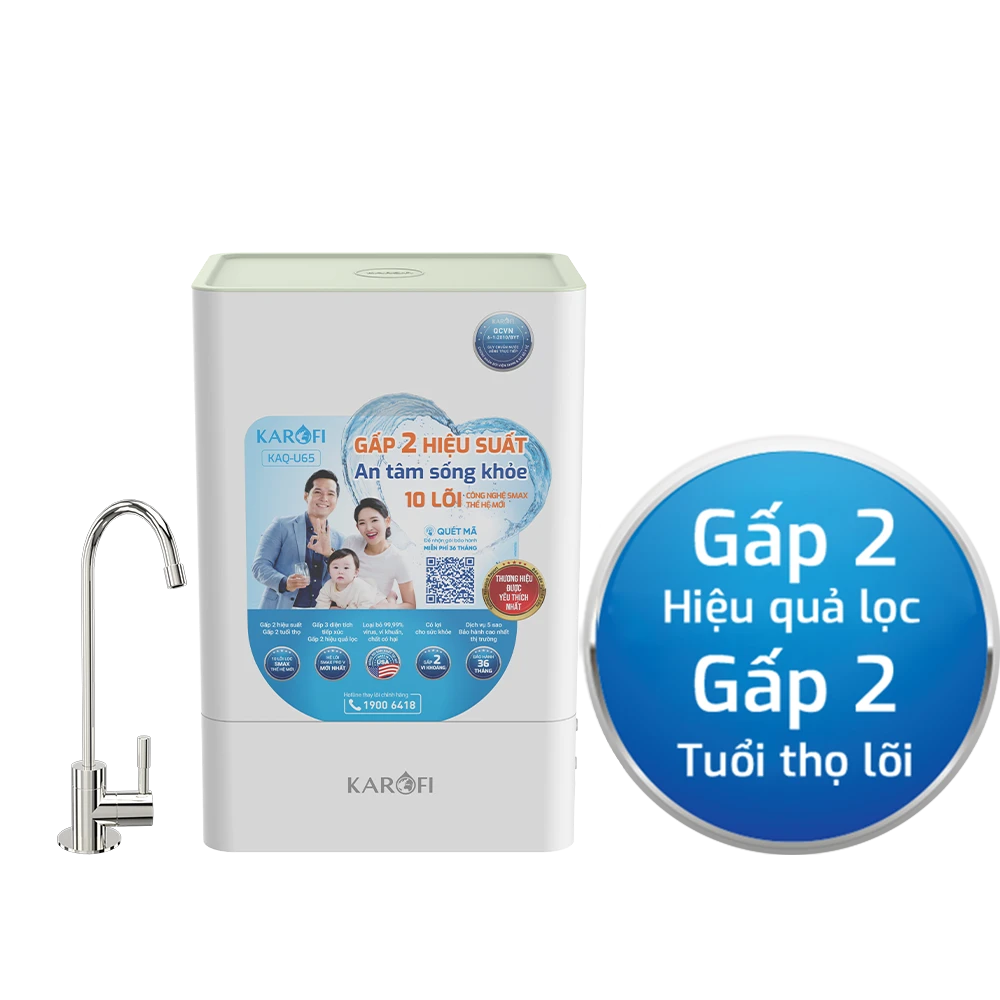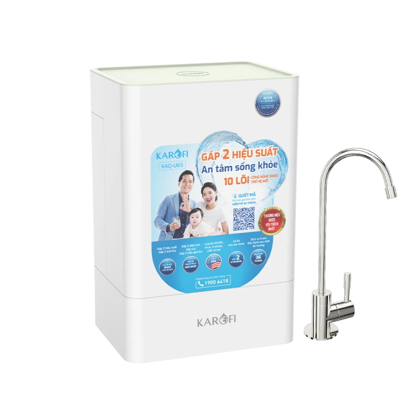 Karofi KAQ-U65 là mẫu máy lọc nước để gầm mới, thiết kế tinh gọn nhưng vẫn đảm bảo hiệu suất lọc cao, phù hợp cho không gian bếp hiện đại.