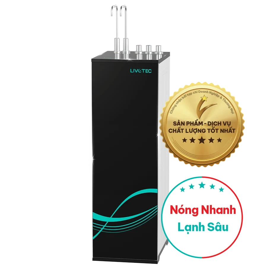 Nước sau lọc đạt chuẩn nước uống tinh khiết đóng chai QCVN 6-1:2010, đã được kiểm nghiệm bởi đơn vị chuyên môn. Máy còn nổi bật với thiết kế sang trọng, mặt kính cường lực bền đẹp và bảo hành 36 tháng, phù hợp nhiều không gian sống hiện đại.