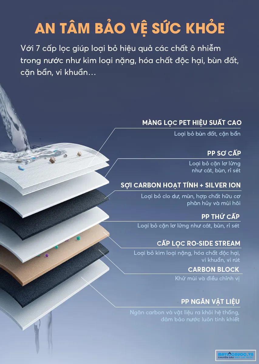 - Số cấp lọc: 7 (trong 1 lõi)