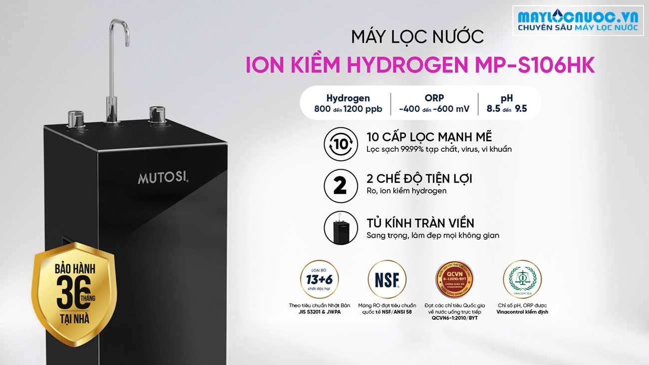 MÁY LỌC NƯỚC ION KIỀM HYDROGEN MUTOSI MP-S106HK