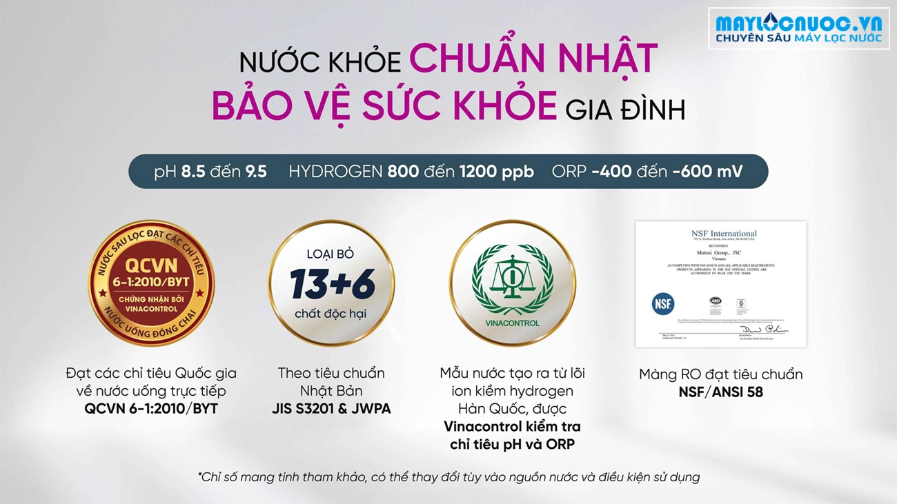 Nước ion kiềm hydrogen trung hòa axit và gốc tự do gây lão hóa. Máy MP-S109HK sản xuất nước với: