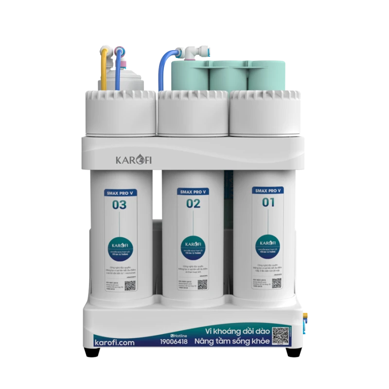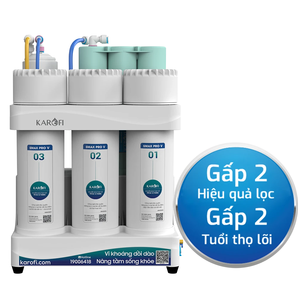 Công nghệ Smax Pro V giúp tăng diện tích tiếp xúc với nước, nâng cao khả năng lọc và kéo dài tuổi thọ lõi. Kết hợp Smart Connect để máy vận hành ổn định hơn trong quá trình sử dụng.